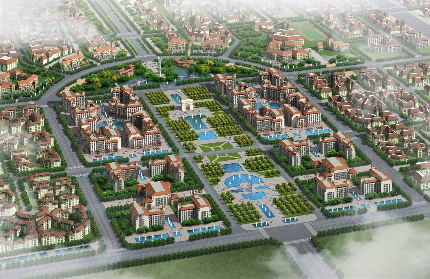 拜城是一座富饒美麗、歷史悠久的小城,面臨跨越式發展契機,城市建設需要科學合理的規劃設計為指導,以利于城市整體效益和功能的發揮,更好的改善城市形象、提升城市品位、體現城市特色。拜城新區的城市設計強調多元的功能復合、高品質的城市環境、高效安全的交通系統、獨具特色的城市形象。規劃設計以具有拜城地域特色的風情小城為目標定位,在規模尺度、空間布局、生活組織、交通流線、景觀營造上都以生態自然、人與環境和諧統一的宜居小城進行控制設計。